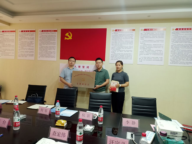 會議在莊嚴的國歌聲中開始,首先興園社區權新同志宣讀了關于同意成立中共安徽世綠環保科技有限公司支部委員會的批復文件,并由社區何軍同志為新成立的支部頒發黨牌并贈送了黨報黨刊。隨后新成立的黨支部進行了第一次全體黨員大員及支部黨委書記的選舉。經過不記名投票,查宏偉同志以全票當選為支部委員會黨委書記。