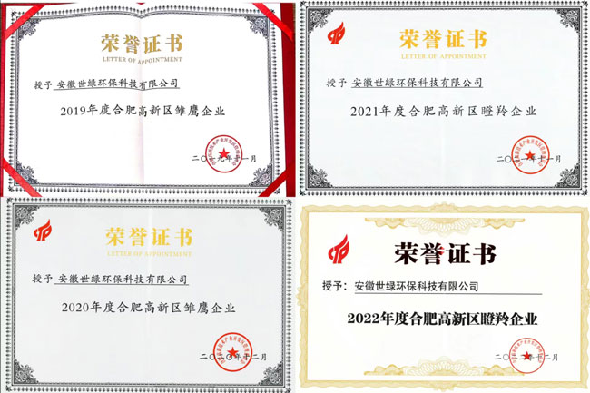 世綠環保連續三年獲得合肥高新區高成長“瞪羚企業”稱號