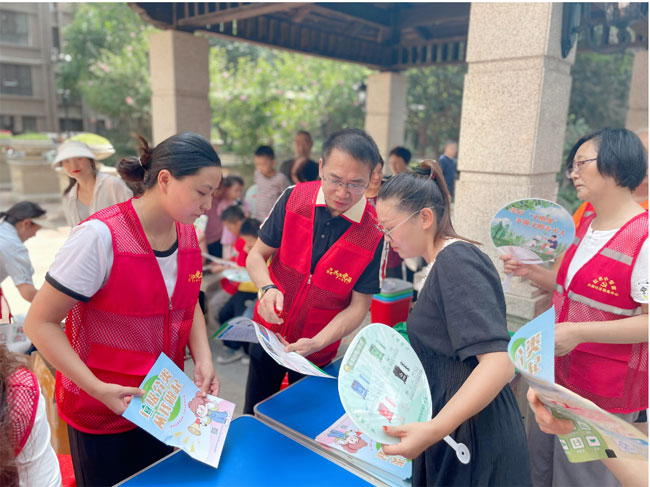 首先,黨員志愿者向社區的小朋友們介紹了垃圾四分類的標識及顏色,并通過生動直觀的講解讓大家認識到垃圾正確分類的重要性。志愿者們利用“分類垃圾桶”引導小朋友認識“可回收物”、“其他垃圾”、“有害垃圾”、“廚余垃圾”四種分類垃圾桶,志愿者還就日常家庭生活中產生的垃圾,細致地講解如何將其分類,倡導大家做好生活垃圾分類,實現資源再利用。